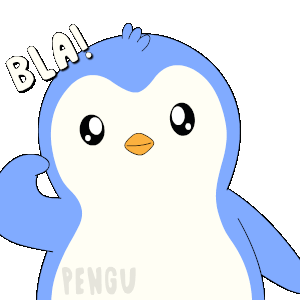 A cute blue and white cartoon penguin raises its flipper to its mouth in a shushing gesture, perfect for saying 'quiet' or 'stop talking'.
