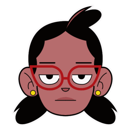 a cartoon drawing of a woman wearing glasses and yellow earrings
