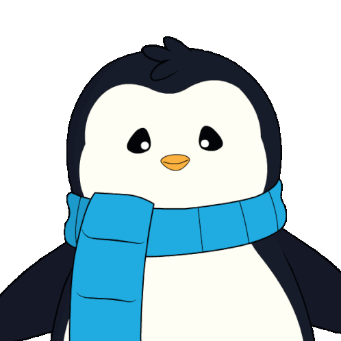 A cute Pudgy Penguin wearing a blue scarf playfully sticks its tongue out, making a 'bleh' face.