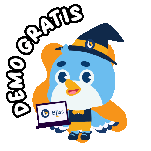 a penguin holding a bliss card in its hand
