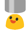 A cute yellow blob with a happy face gets repeatedly squished by a heavy grey object, then bounces back with a smile.