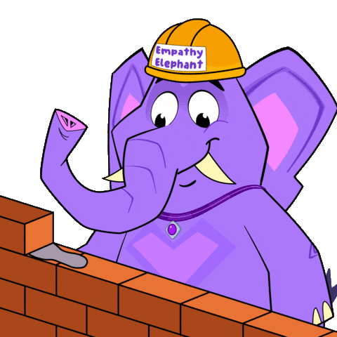 a purple elephant wearing a yellow hard hat that says " empathy elephant "