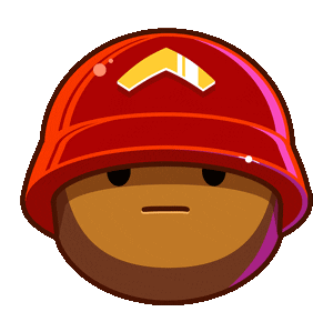 A Bloons monkey character in a red helmet changes from a neutral to a wide-mouthed surprised expression.