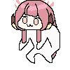 Pixel art animation of Aru from Blue Archive, featuring her pink hair and horns, blinking and moving slightly.