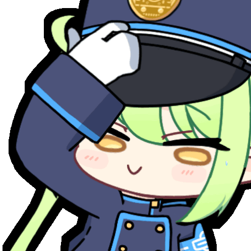 Blue Archive character Nozomi in a blue officer uniform, saluting with a slight blush and sweat drop.