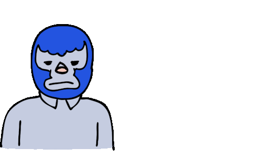 Blue Demon, the legendary luchador, in an animated sticker showing his iconic blue mask changing to reveal his face and back again in a loop.