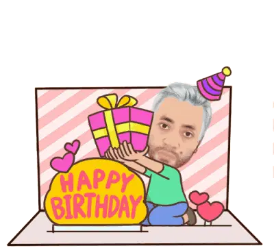 Bluekutug cartoon man holds a yellow heart with 'LOVE' on it, surrounded by small red hearts.
