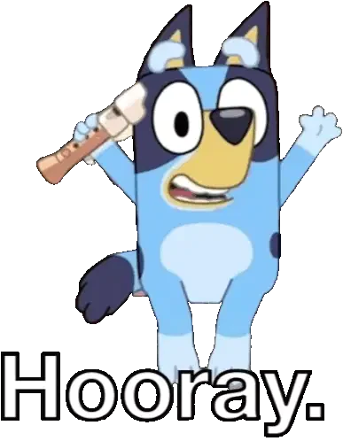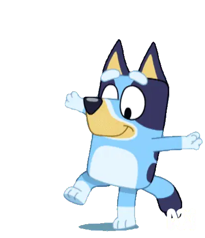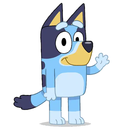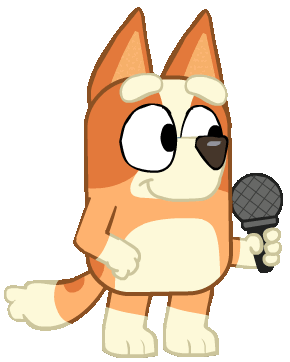 Bluey, the beloved cartoon dog, holds a microphone, ready to sing or speak. A fun animated sticker for expressing yourself.