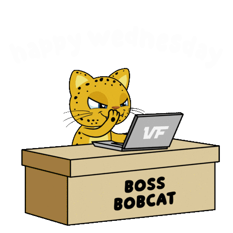 a cartoon of a leopard sitting at a desk with papers and a laptop that says boss bobcat
