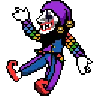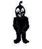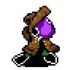 Animated pixel art sticker of Bobo from Everhood 2, a cloaked character with a purple skull mask.