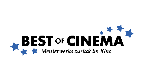 a logo for best of cinema has blue stars on it