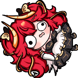 An animated chibi VTuber character, Bocchi Summonercherry, with red hair and horns, performs a cute dance with heart effects.