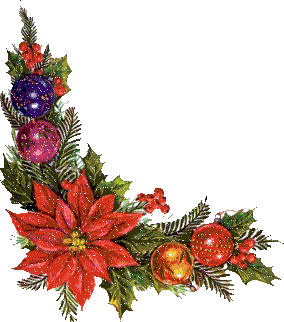 Festive animated sticker wishing 'Merry Christmas' with vibrant poinsettia flowers and elegant holiday ornaments.