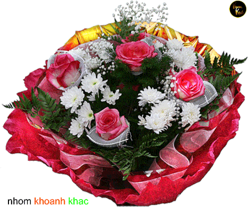 A vibrant Bong Hoa flower bouquet, featuring pink, purple, and white blooms wrapped in blue paper, sways gently.