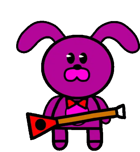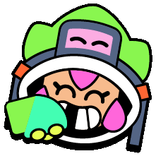 a cartoon character with a green hat and a pink face is holding a green object in his mouth .