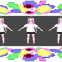 Bono Dojima, the Bunny of Dojima, stands in a T-pose, showcasing her colorful hair and outfit against a vibrant pixel background.