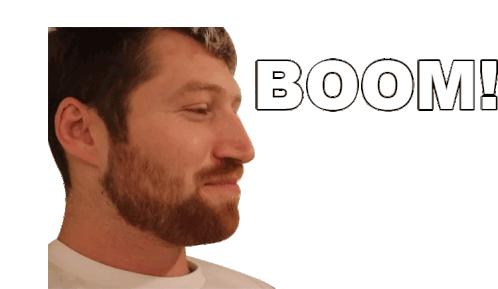 Scotty Sire reacts with a surprised expression as the word 'BOOM!' appears next to him, capturing a moment of shock or revelation.