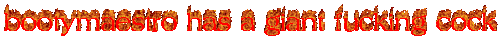 A bold sticker featuring flaming text that reads 'Bootymaestro Giant Cock' on a white background, emphasizing explicit content.