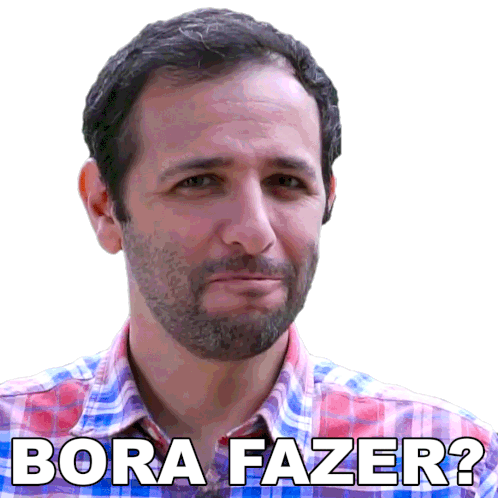Ibere Thenorio, wearing a plaid shirt, smiles and asks 'Bora Fazer?' (Shall we do it?), inviting viewers to action.