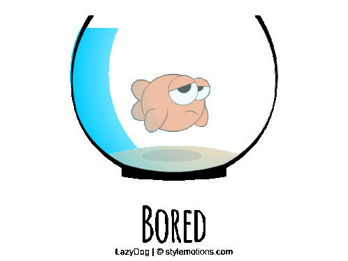 a cartoon of a fish in a bowl with the word bored on the bottom