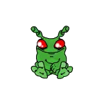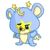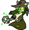 An orange Bori Neopet stands by a glittery 'WELCOME' sign, holding a brush next to a bucket.