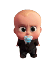 Boss Baby, wearing a suit and pacifier, stands still, conveying the phrase 'This Picture Sucks'.