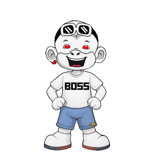 a cartoon character is wearing a white shirt with the word boss on it