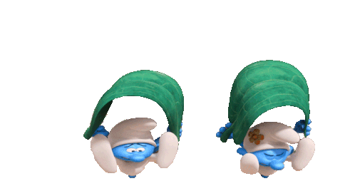 Jokey Smurf and Vanity Smurf are seen bouncing while holding large green leaves like parachutes.