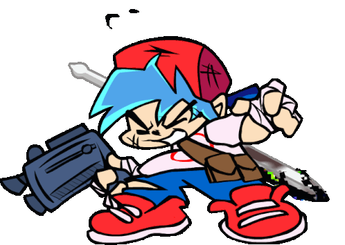 Boyfriend from FNF faces the Pibby-apocalypse, armed with a boombox and a corrupted sword, ready for battle.