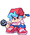 Boyfriend from FNF in pixel art, holding a microphone and wearing a hat, animated with a cool pose.
