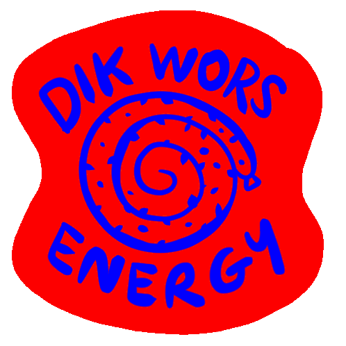 a red sticker that says dik wors energy on it