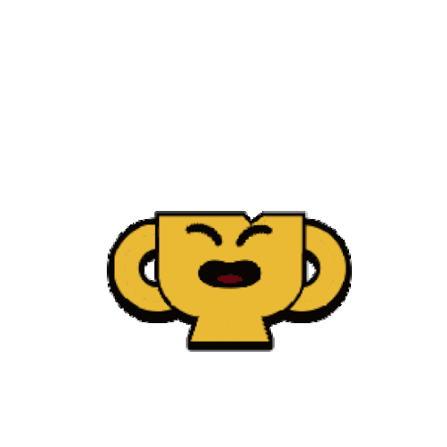 Animated Brawl Stars trophy pins, featuring a laughing trophy, a crowned trophy, and a triumphant, smiling trophy with stars.