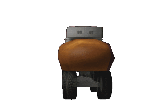 An animated sticker featuring a creative bread loaf tank with wheels and a rotating cannon turret.
