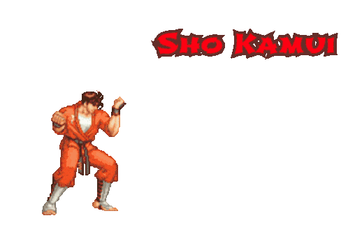 a video game character with the name sho kamui written on the bottom