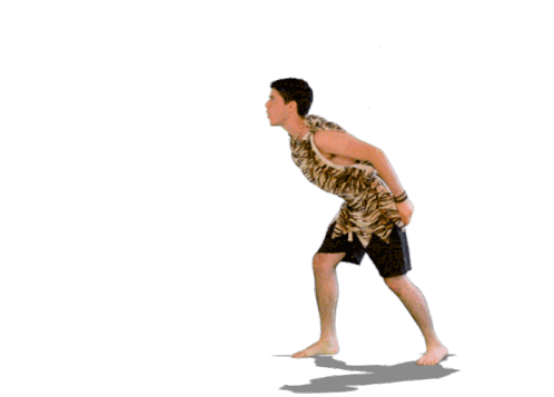 An animated sticker featuring Maui blowing a strong breeze, depicted by a young man in a tiger-print top.