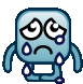 An animated pixel art sticker of Bricci, a sad cartoon character, shedding large tears from his eyes.