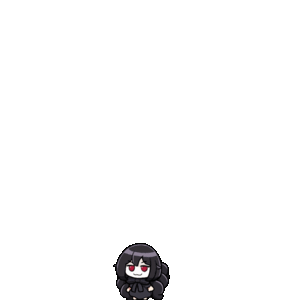 A pixel art girl with black hair and red eyes watches as a red, hexagonal brick-like object falls from above in this Brick Throw sticker.