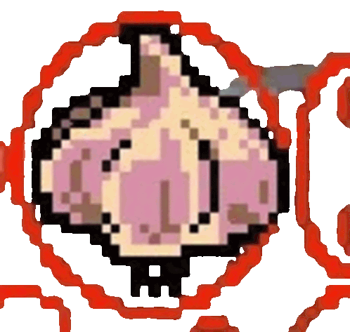 a pixel art drawing of a garlic bulb with a red circle around it