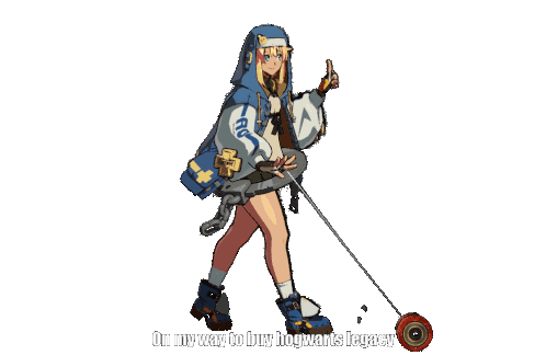 a cartoon of a girl holding a yo-yo with the words on my way to buy hogwarts legacy
