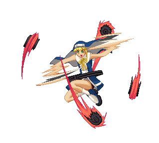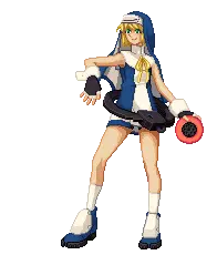 Animated pixel art sticker of Bridget from Guilty Gear XX, depicted holding a sword in a dynamic pose.