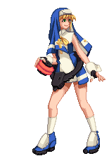 Bridget from Guilty Gear XX, a pixel art character, stands holding her signature yo-yo weapon.