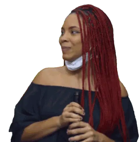 Noemia Oliveira smiles warmly, expressing gratitude with 'Brigada' (Thank you) on screen. She wears a pink top.