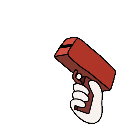 A cartoon hand holds a red money gun that shoots out only smoke, humorously indicating being broke and having no money.