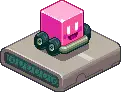 A pixelated, broken GIF style animation of two construction workers pushing a wheelbarrow with loading circles.