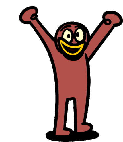 An animated sticker featuring the red mascot of the band Between the Buried and Me, with arms raised in a celebratory cheer.