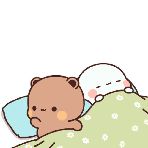 Bubudud and a friend, two adorable cartoon bears, are tucked in bed under a daisy-patterned blanket, wishing 'Good night!'.