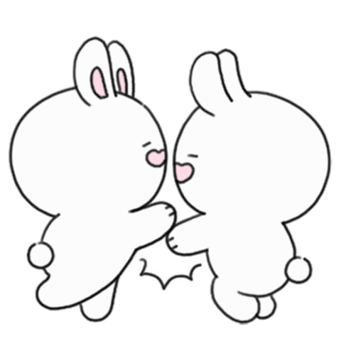 Cute cartoon bunnies show affection, followed by a friendly handshake symbolizing solidarity and agreement.