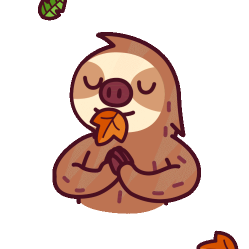 a cartoon drawing of a sloth with leaves falling on its head