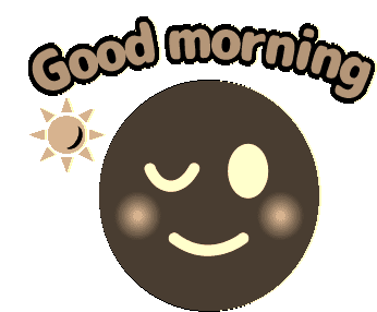 A cheerful animated sticker featuring a smiling face, a bright sun, and the greeting 'Good morning'.