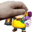 Hiker Wario from Bugburger2, depicted in charming pixel art as an animated emote, possibly with a 'petpet' or 'squish' effect.